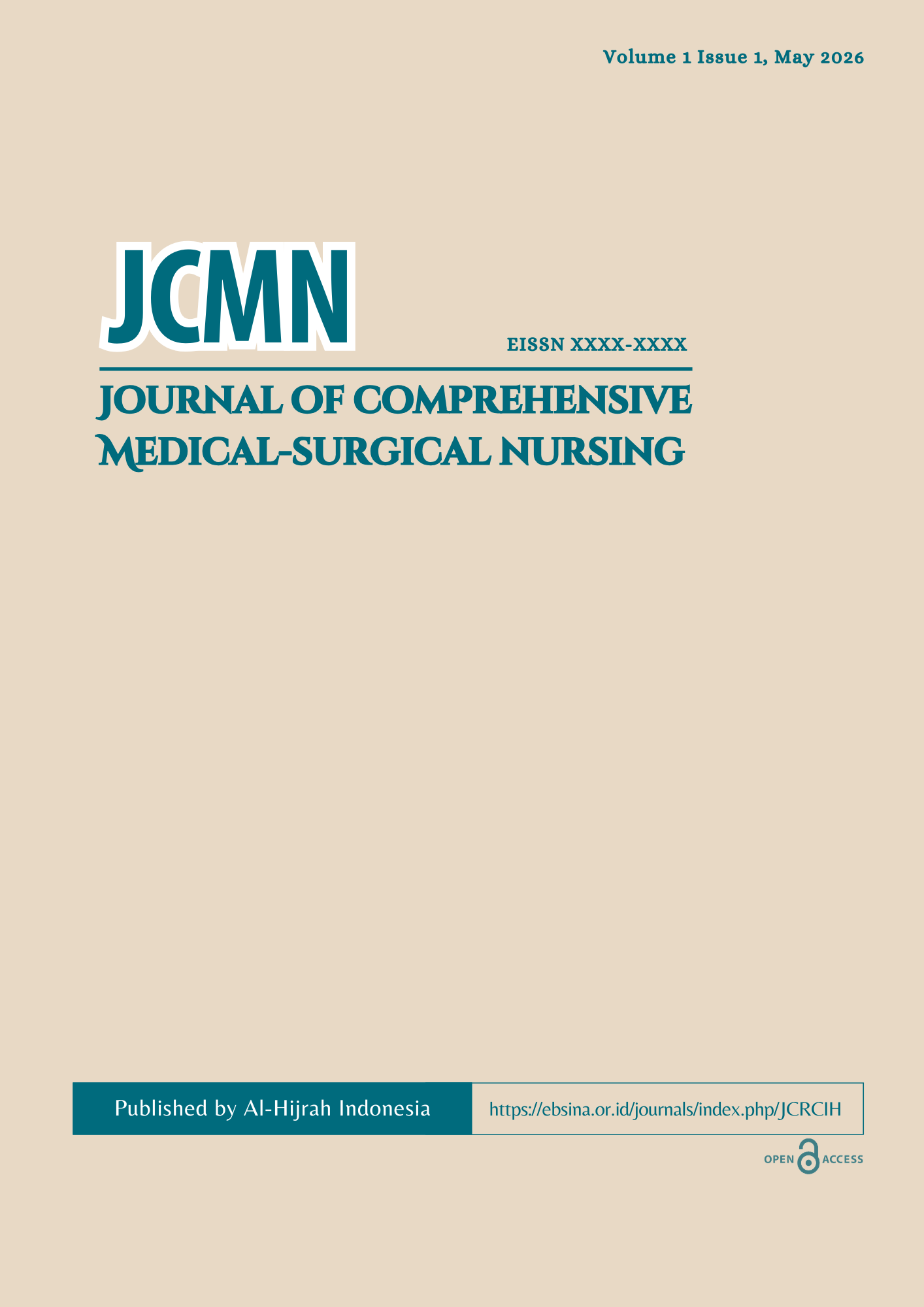 Journal of Comprehensive Medical-Surgical Nursing (JCMN) is an international peer-reviewed journal dedicated to advancing evidence and practice in medical-surgical nursing across the full continuum of care. The journal publishes high-quality research, systematic reviews, clinical innovations, and scholarly perspectives addressing acute, chronic, emergency, and critical health conditions throughout all phases of care — from prevention, early detection, acute management, critical stabilization, recovery, rehabilitation, to long-term chronic care.